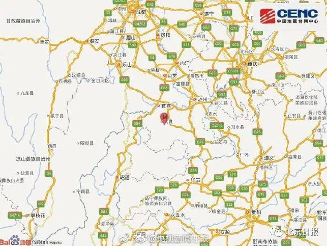 中国地震台网正式测定,6月22日22时29分在四川宜宾市珙县发生5.4级地震,震源深度10千米,震中位于北纬28.43度,东经104.77度。
